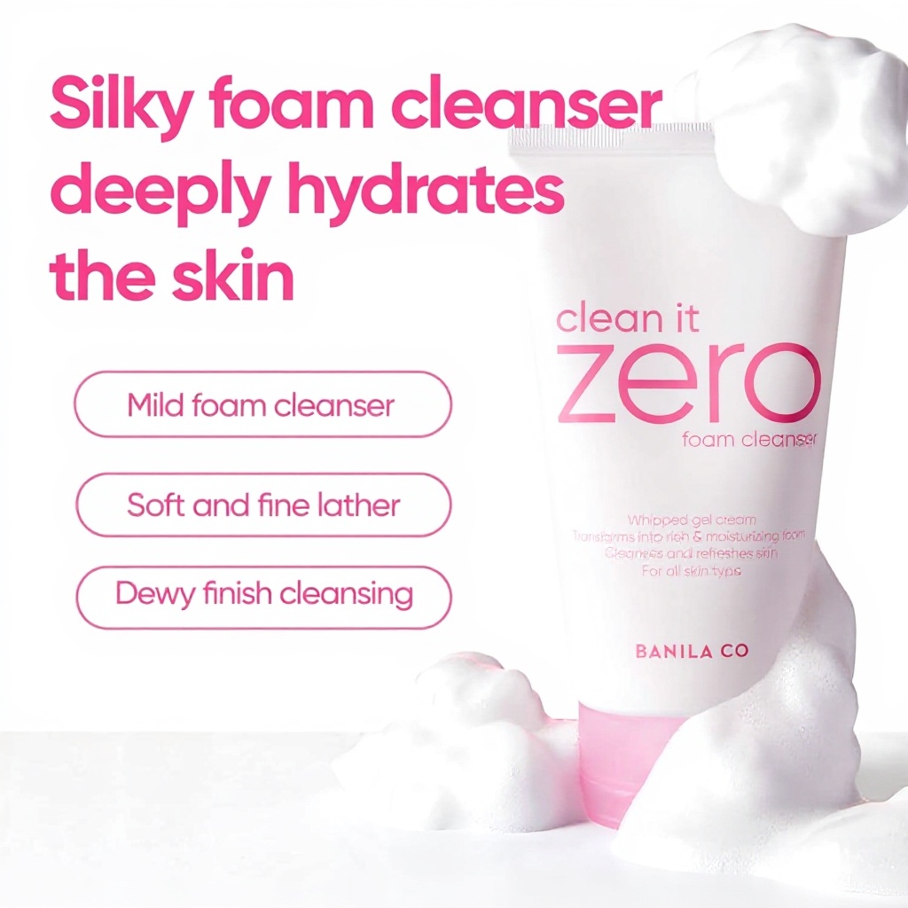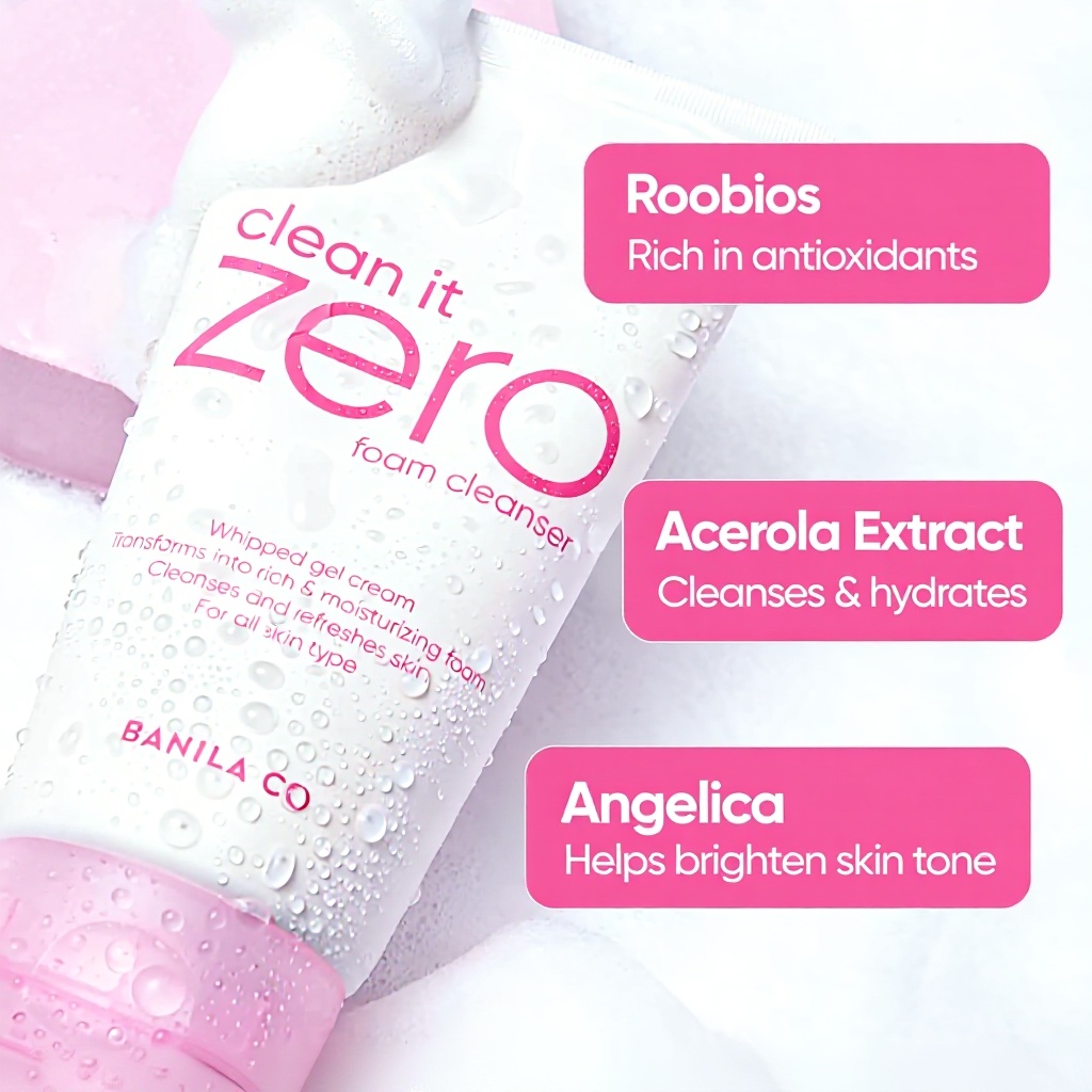Der BANILA CO Clean it Zero Original Schaumreiniger zeichnet sich durch seinen reichhaltigen und seidigen Schaum aus, der tiefenwirksam reinigt und die Haut mit Feuchtigkeit versorgt. Die Formel enthält natürliche Inhaltsstoffe wie Acerola-Beere und Rotbusch, die antioxidative Vorteile bieten und Unreinheiten aus Poren und Fältchen entfernen, ohne die Haut zu reizen.