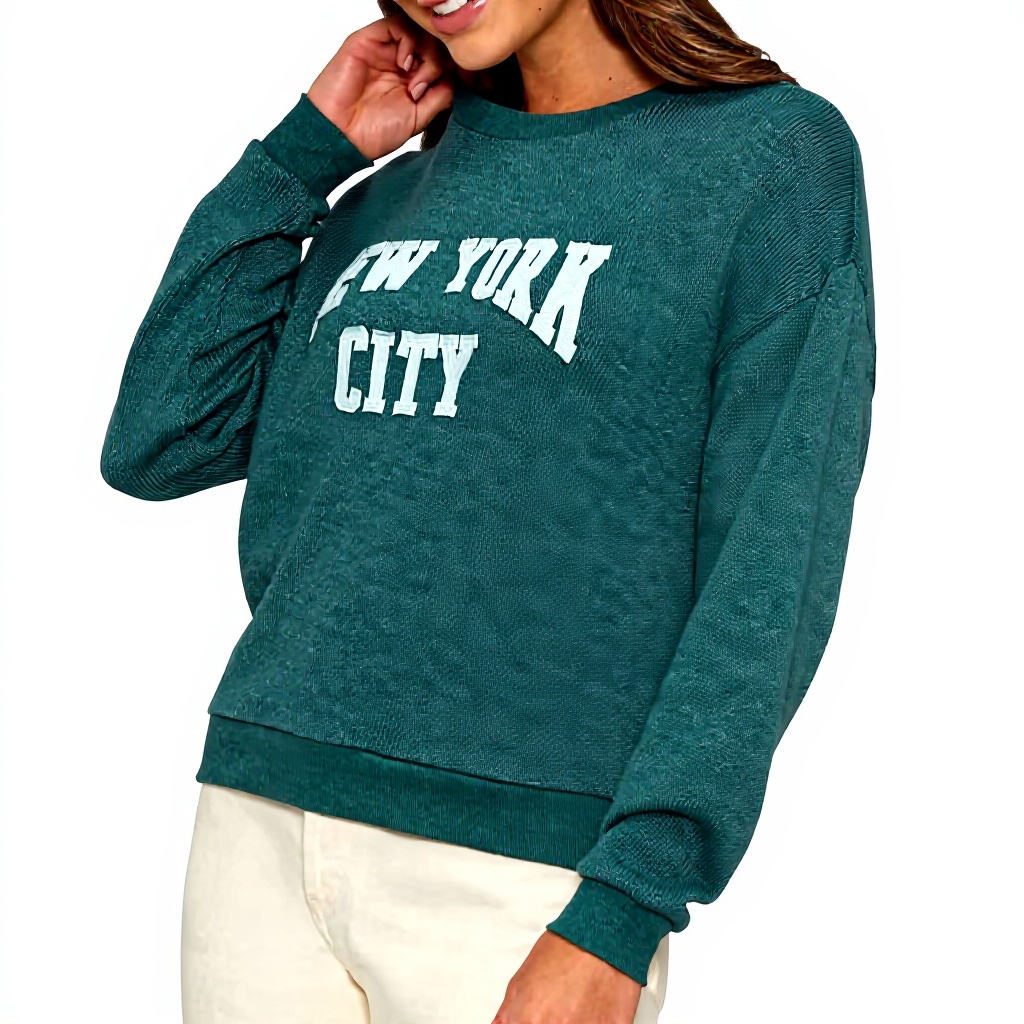 Der Pullover ist in den Größen S, M, L und XL erhältlich und passt sich mit seiner lockeren Silhouette verschiedenen Körperformen an. Die Farben Babyblau, New York und Extra Schmutzig bieten vielfältige Stylingoptionen. Die Länge beträgt 58,4 cm (23 Zoll) von der Schulter bis zum Saum.